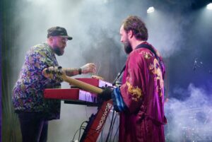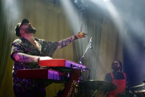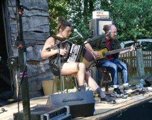 Accordéon, guitare, samples, chant diphonique et voix vous emmènent dans une répétition évolutive et surprenante. Vrai duo polyphonique, on les entend quinze et ils ne sont que deux.
