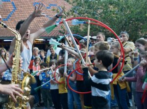 Une fanfare, des instruments fabriqués, de l’improvisation, de la rigolade, c’est tout ça Renée !